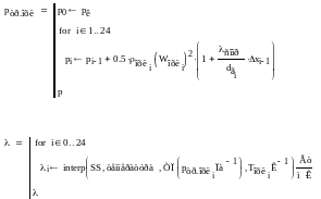 Определяется распределение давления в тракте охлаждения вдоль камеры. Давление в следующем сечении равно давлению в предыдущем сечении плюс потери на участке между сечениями.
