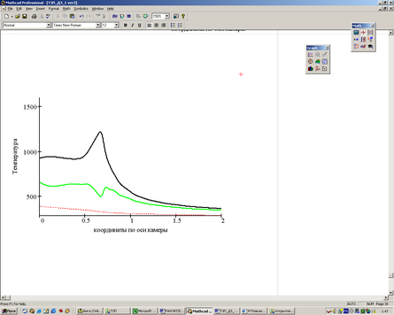 Распределение температуры вдоль камеры