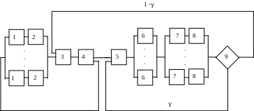 Схема моделируемой ЛВС в обозначениях блоков языка GPSS.