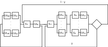 ф1 – среднее значение интенсивности фонового потока запросов, проходящих через ОА, имитирующих работу процессора, где =1/(1-) ;