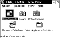 6. Для подключения пользователей к домену раскройте папку "User Accounts". В этой папке есть пиктограммы для пользователей GUEST, USERID и PRG. Для того чтобы подключить нового пользователя , воспользуйтесь шаблоном UserID Template. Переместите правой кнопкой мыши пиктограмму шаблона на свободное место в папке "User Accounts".