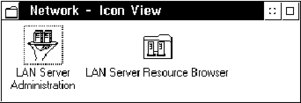 3. Откройте ее и сделайте двойной щелчок левой клавишей мыши по пиктограмме LAN Server Administration. При этом будет запущена система администрирования сети IBM LAN Server 4.0 Advanced .