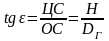 Формула, определяющая зависимость высоты от угла и дальности до цели может быть получена при помощи геометрических построений, приведенных на рис. . Заменяя движение лучей относительным движением объекта, обозначим точки пересечения объекта с плоскостями через Б и А. При этом ОБ = ОА = D, ОВ = ОД = DГ. (DГ – горизонтальная дальность до цели).
