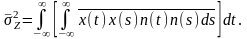 Произведем усреднение под знаком интеграла и заменим квадрат интеграла произведением двух одинаковых интегралов.