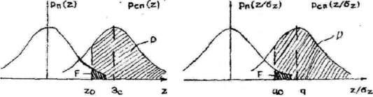 На рис изображены плотности вероятности принимаемой реализации в отсутствие и при наличии сигнала как функции нормированного значения корреляционного сигнала. Из анализа этих графиков