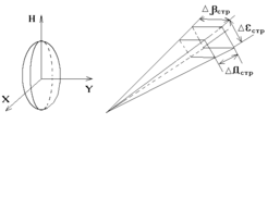 Обычно форма строба выбирается простейшей для задания в той системе координат, в которой осуществляется обработка РЛИ. При обработке в сферической системе координат простейший строб задается линейным размером по дальности ΔДстр и двумя угловыми размерами: по азимуту Δβстр и по углу места Δεстр (рис. 2,б).