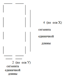 Поле для отображения знака по координате Х составляет четыре сегмента единичной длины, а по координате У - два (рис.2).