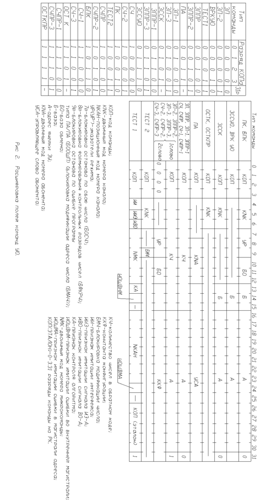 На рис. №2 дана расшифровка формата команд УО. Как видно из рисунка 31-й разряд большинства команд используется в качестве дополнительного разряда кода команды.