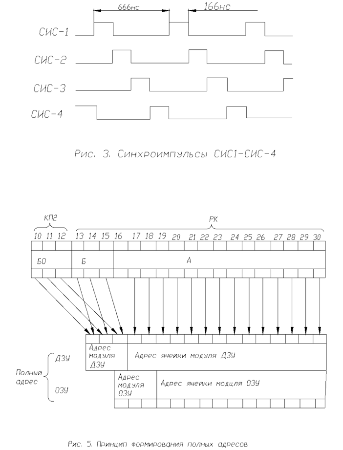 Так как СВ может иметь в своем составе до 7 блоков ОЗУ по 4096 слов и до 8 блоков ДЗУ по 8192 слова, то полный адрес для ОЗУ и ДЗУ состоит из разного количества разрядов. Принцип формирования полных адресов показан на рис. 5.