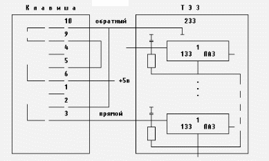 Рис.1. Подключение клавишей ПОУ СВ к ТЭЗам ВчУ 1.