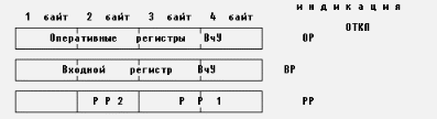 Для управления индикацией служит переключатель, обеспечивающий замыкание соответствующих пар прямых и обратных проводов в трех положениях: ОР, ВР и РР. В положении ОР обеспечивается подключение к схеме индикации выходов оперативных регистров ВчУ, в положении ВР – выходов входного регистра ВчУ и в положении РР – выходов старшего байта ССП (первый байт индикации), регистра результата РР2 (второй байт индикации) и регистра результата РР1 (третий и четвертый байты индикации).