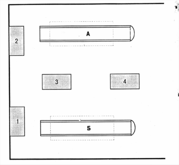 Рабочие места для этих специалистов на постах технического обслуживания ПТОР размещаются в зависимости от расположения осмотровых канав, наличия оборудования и особенностей устройства ПТОР. На рис. 2 показана схема расположения рабочих мест специалистов ПТОР с двумя тупиковыми постами.