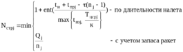 Количество стрельб, проводимых каждым участвующим в отражении удара зрдн j-го типа Nстр j принимается равным минимальному значению из числа стрельб, проведенных при израсходовании готовых к применению ракет Qj или при отражении удара СВН заданной продолжительности tн и определяется по следующим формулам: