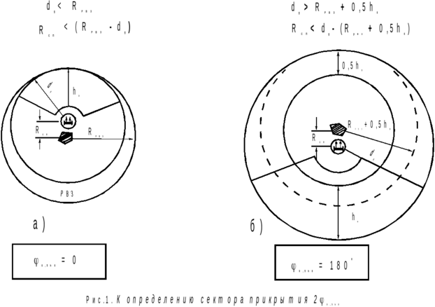 Рис.3.1.2 Сектор прикрытия. Однократное прикрытие объекта