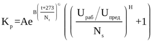 Температурный коэффициент Kt и коэффициент режима Kp находят как