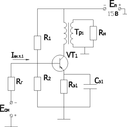 | Резистор Rэ1 (МЛТ-1-3,6) | постоянный проволочный; Rэ1 = 3,6 Ом | Pраб = 0,62 Вт; T = 25°С |