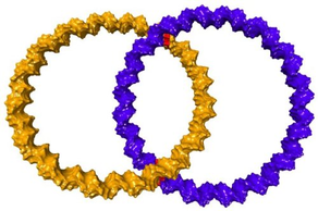 Этот эксперимент, описанный в журнале Nano Letters, начался с создания двух разомкнутых цепочек ДНК, форма которых напоминала форму буквы С. Затем к этим цепочкам ДНК были добавлены полиамидные связующие, с помощью которых кольца скрепились друг с другом, затем в состав был добавлен олигонуклеотид, который заставил разорванные концы сомкнуться и сформировать кольца. Эта операция была произведенная только с помощью химических реакций и превращений, никаких наноинструментов при этом не использовалось. [12]