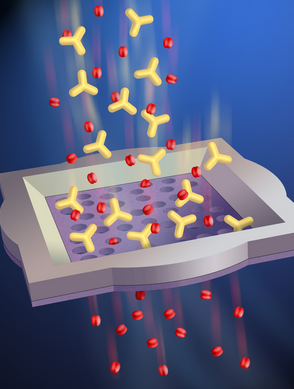 Использование трековых мембран позволяет очищать кровь от вирусов, возвращая при этом очищенную плазму обратно в кровь. Применяться нанофильтры будут для лечения и профилактики многих заболеваний, но в первую очередь в борьбе с атеросклерозом, вызывающим инфаркт миокарда, инсульт. Медики считают атеросклероз проблемой века, ведь по данным Минздравсоцразвития РФ тяжелые сердечно-сосудистые заболевания являются причиной смерти чаще всего (57% от общей смертности населения). На рисунке 5 показана условная модель фильтрации крови от вирусов.