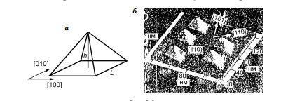 Островки ограняются поверхностями с малой поверхностной энергией (так называемые кристаллографические грани с низкими индексами Миллера). Например, на под ложке GaAs с ориентацией (100) равновесная форма островков InAs — это пирамидки с квадратным основанием.