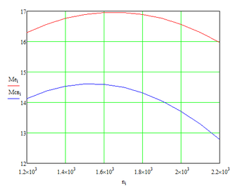 Nn(ni) = 0,15∙ Ne max∙(ni/2200)3+0,05∙ Ne max
