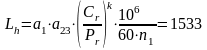 Требуемый ресурс работы подшипника Lh = 500 часов;