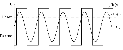 Триггер Шмитта функционально является компаратором, уровни включения и выключения которого различаются на величину гистерезиса переключения.