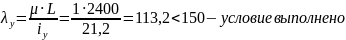 Гибкость, для стоек главной фермы, не должна превышать 150.