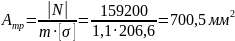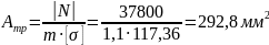 Выбираем тавр №10 ОБТ 0 по ТУ 14-2-24-72 с площадью поперечного сечения 1020