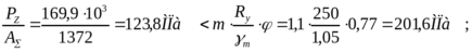где φу=0.9 – коэффициент понижения допускаемых напряжений (выбирается в зависимости от λmax по СНиП);