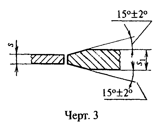 При разнице в толщине свариваемых деталей свыше значений, указанных в табл. 48, на детали, имеющей большую толщину s_1 должен быть сделан скос с одной или двух сторон до толщины тонкой детали s, как указано на черт. 2 и 3. При этом конструктивные элементы подготовленных кромок и размеры сварного шва следует выбирать по меньшей толщине.