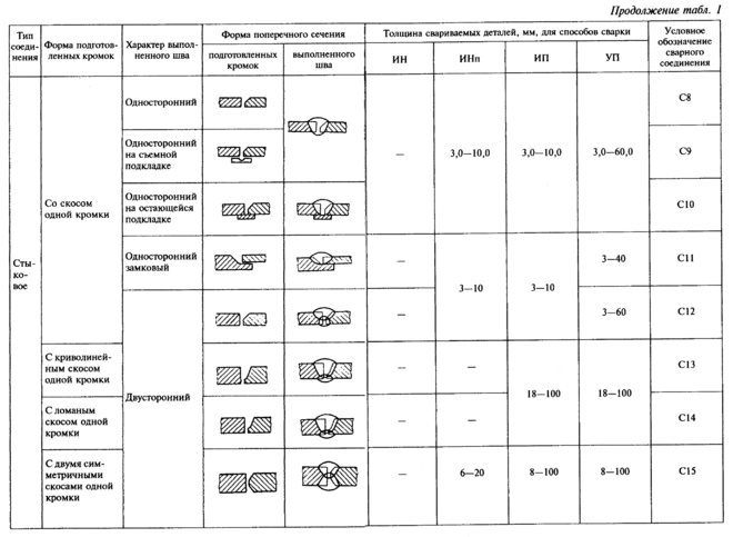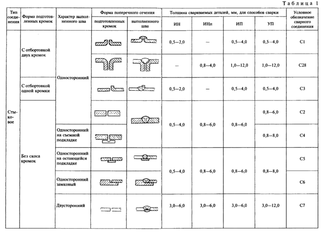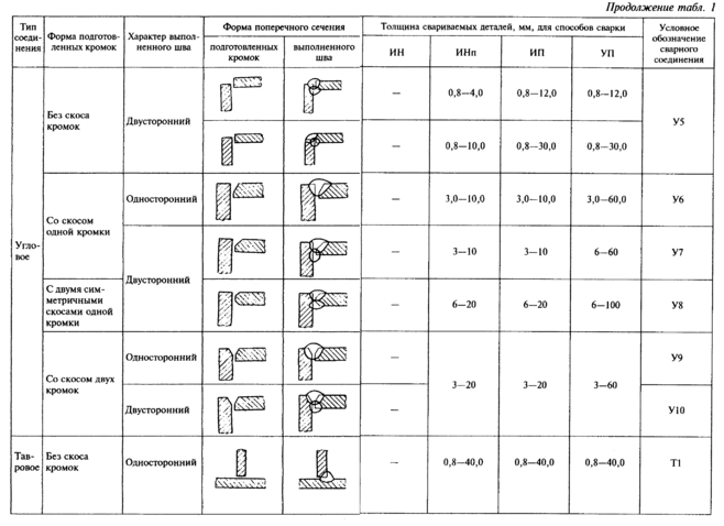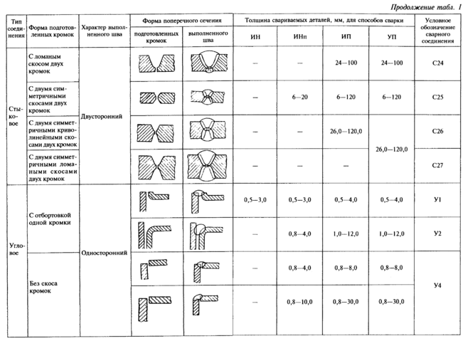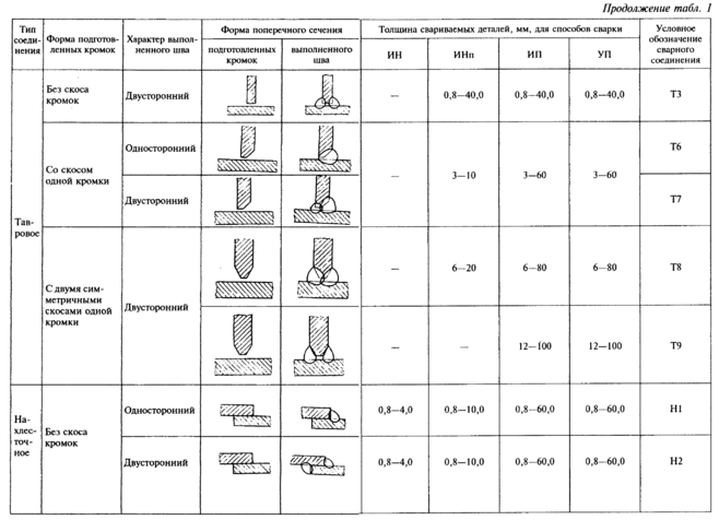 3. Основные типы сварных соединений должны соответствовать указанным в табл. 1.