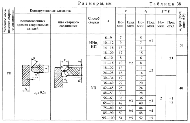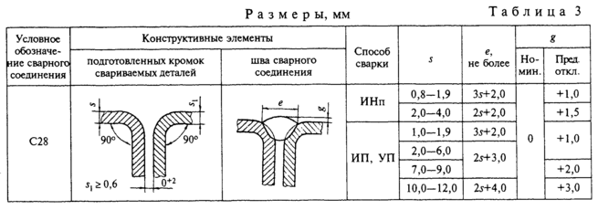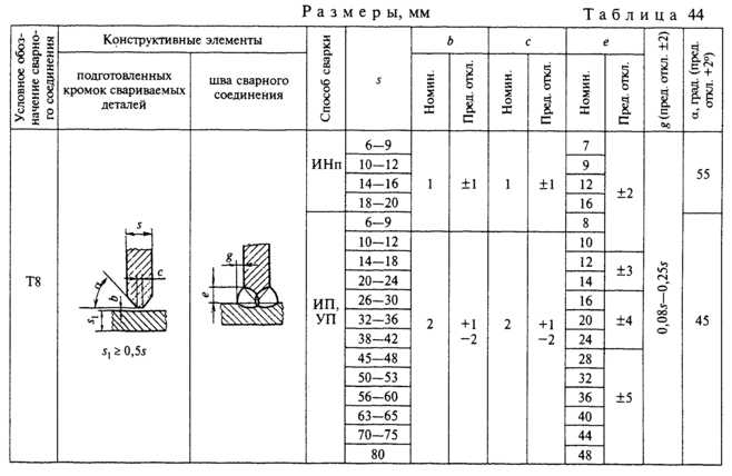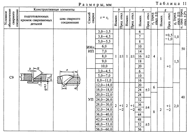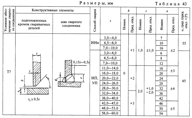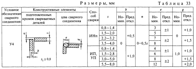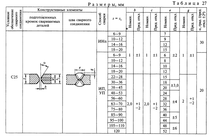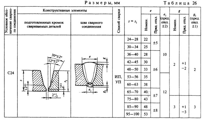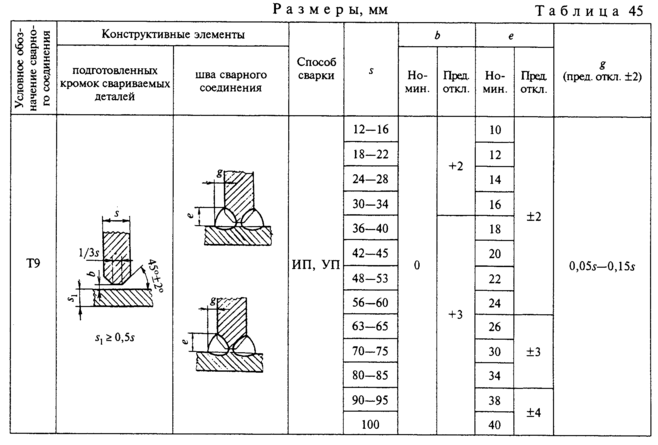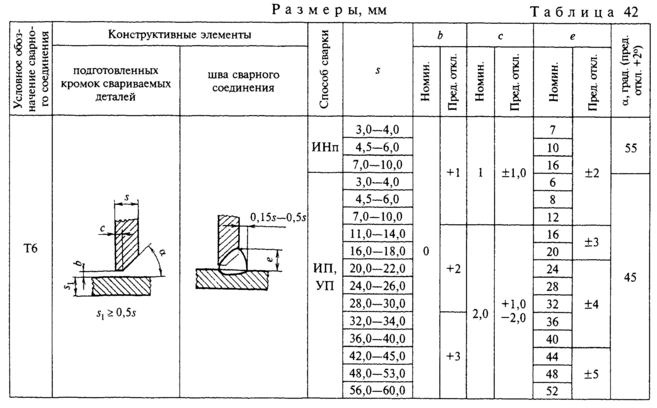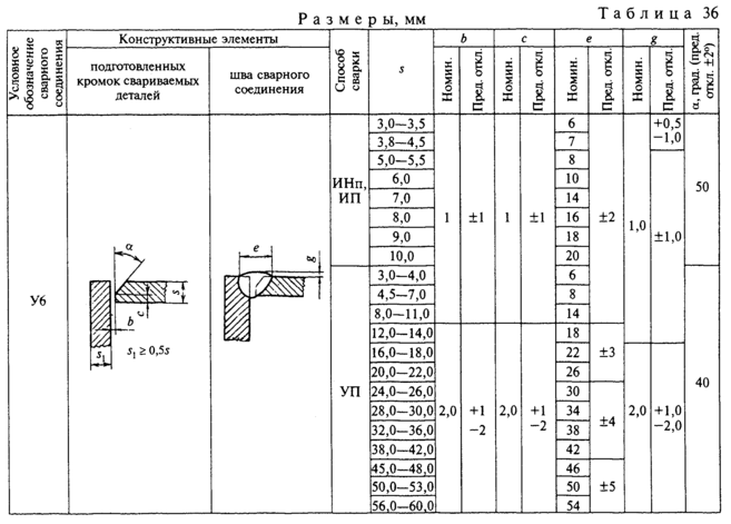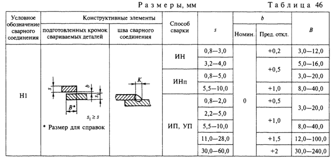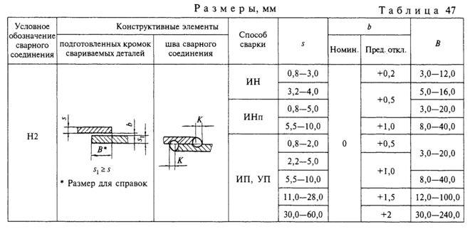 4. Конструктивные элементы сварных соединений, их размеры и предельные отклонения по ним должны соответствовать указанным в табл. 2-47. Кроме указанных способов сварки, допускается применять другие способы дуговой сварки в защитных газах.