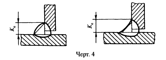 11. Допускается выпуклость или вогнутость углового шва до 30% его катета, но не более 3 мм. При этом вогнутость не должна приводить к уменьшению значения катета К_n (черт. 4), установленного при проектировании.