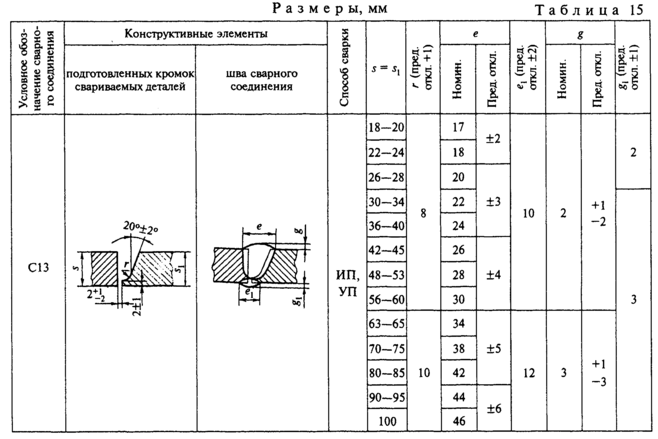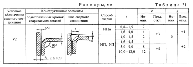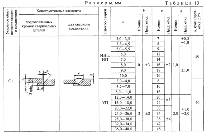13. При сварке в углекислом газе электродной проволокой диаметром 0,8-1,4 мм допускается применять основные типы сварных соединений и их конструктивные элементы по ГОСТ 5264-80.
