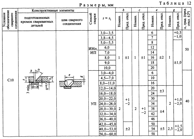 12. Допускается перед сваркой смещение кромок относительно друг друга не более: