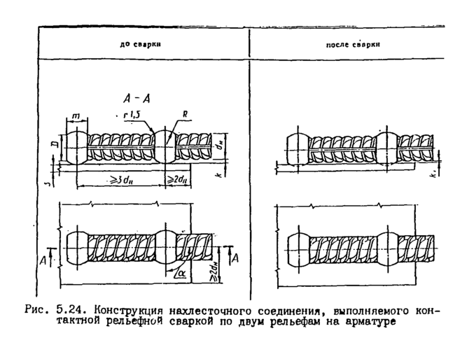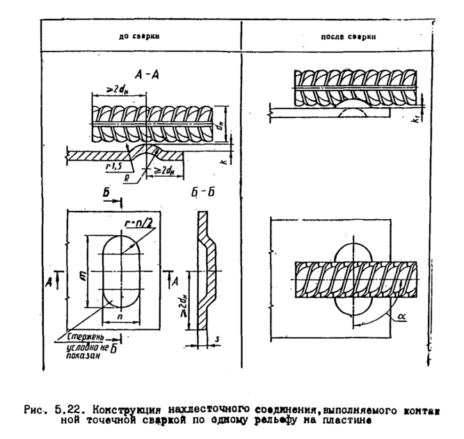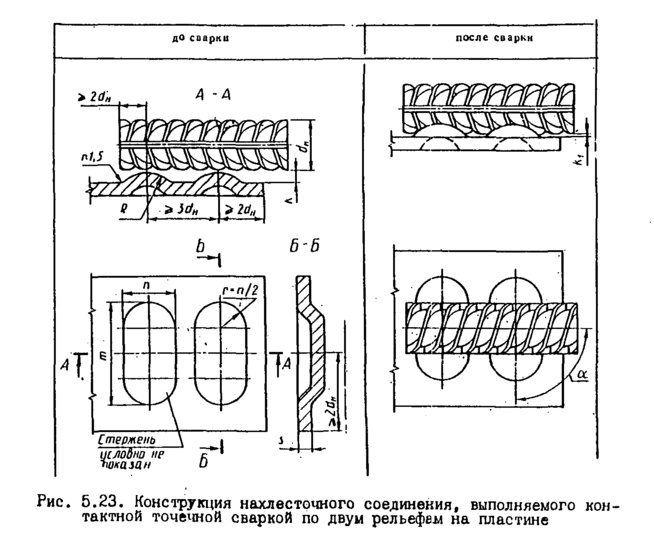 5.9.3. Основные параметры режима рельефной сварки те же, что и для точечной сварки крестообразных соединений стержней (раздел 4).