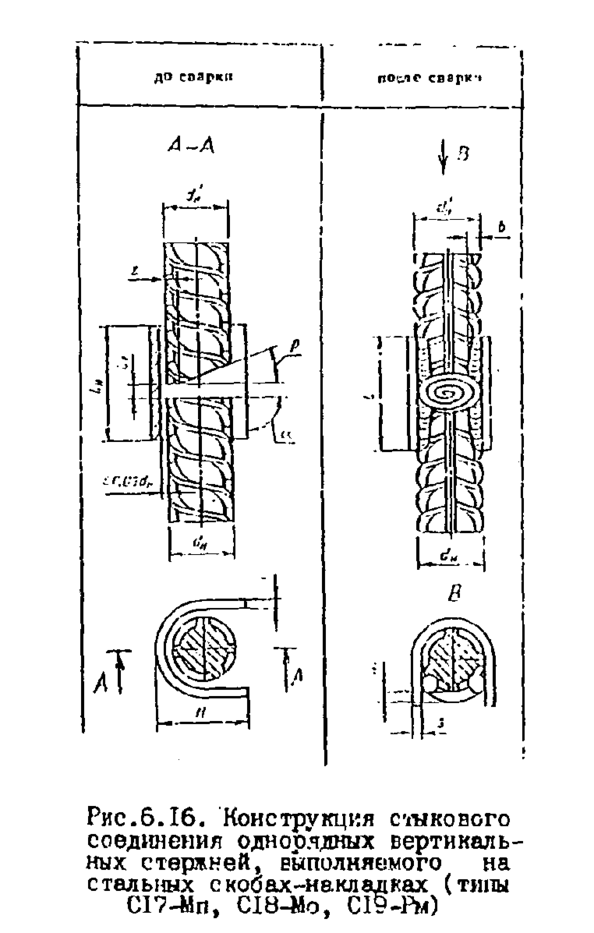 6.6.4. Конструкция стыкового соединения вертикальных стержней типа С17-Мп должна соответствовать приведенной на рис. 6.16 и в табл. 6.11.