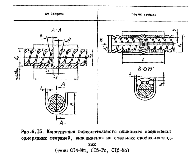 6.6.7. В практике строительства применяются стыковые соединения вертикальных арматурных стержней, имеющие замкнутые стальные скобы-подкладки*(10) , конструкция которых не нормируется ГОСТом*(11).