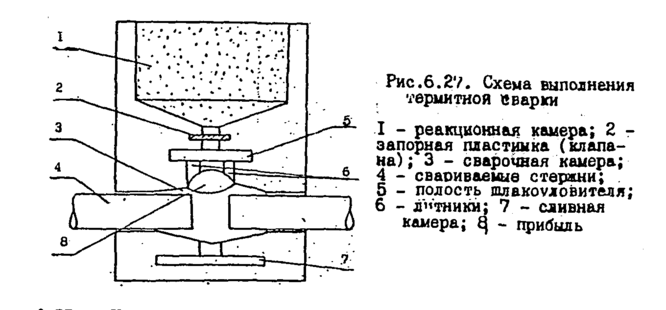 6.11.2. Необходимая прочность литого металла, которым заполняется межторцевое пространство, достигается введением в термитную смесь легирующих добавок в виде различных ферросплавов.