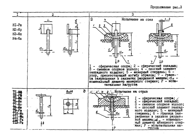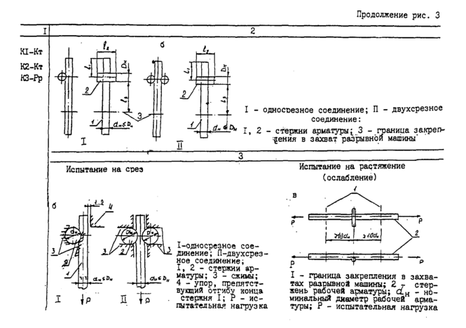 3. При испытании на срез должно быть обеспечено прочное закрепление стержня диаметром D_н, исключающее возможность его поворота вокруг своей оси. При испытании должна быть обеспечена также возможность свободного перемещения стержня диаметром d_н под действием усилия Р. Отгибание ненагруженного конца стержня диаметром d_н в сторону, противоположную сварному соединению, не должно превышать 0,5-1,0 мм. Клиновый захват, расположенный со стороны нагруженного усилием Р стержня, должен иметь вырез, обеспечивающий свободное перемещение стержня диаметром d_н под действием этого усилия, зазор между боковыми стенками выреза и гратом в сварном соединении принимают 2-3 мм.