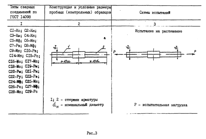 Конструкцию и основные размеры пробных образцов, изготовляемых для проверки выбранного режима сварки в зависимости от типа сварного соединения, следует принимать согласно ГОСТ 14098, рис. 3 и табл. 3.