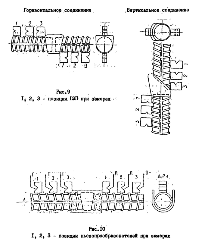 5.4.5. При контроле соединений с соотношением диаметров арматуры менее 0,8 замеры А_о проводят согласно требованиям п. 5.4.2 только с использованием СОП, причем излучающий ПЭП должен быть установлен на стержне меньшего диаметра.