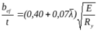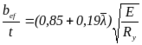 от 0,8 до 4 отношение расчетной ширины свеса поясного листа (полки) bef к толщине i следует принимать не более значений, определяемых по формулам табл. 29*.