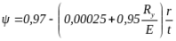cr – критическое напряжение, равное меньшему из значений Ry или cEt/r (здесь r – радиус срединной поверхности оболочки; t – толщина оболочки).