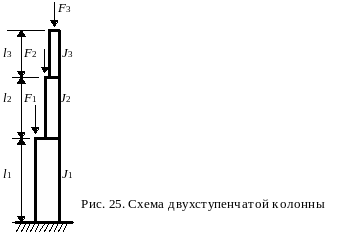 F1, F2, F3 – продольные силы, приложенные соответственно в местах образования ступеней и к верху колонны;