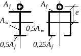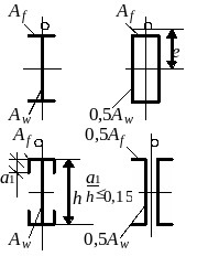 | Примечания: 1. Для типов сечения 5–7 при подсчете значений Af /Aw площадь вертикальных элементов полок не следует учитывать. 2. Для типов сечений 6–7 значения 5 следует принимать равными значениям для типа 5 при тех же значениях Af /Aw. | ||||||