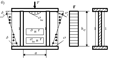 В отсеках, где сосредоточенная нагрузка приложена к растянутому поясу, одновременно должны быть учтены только два компонента напряженного состояния: и или loc и .