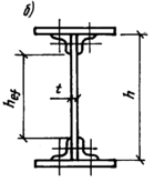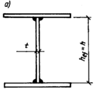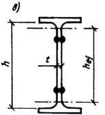 hef – расчетная высота стенки (рис. 10), равная в сварных балках полной высоте стенки, в балках с поясными соединениями на высокопрочных болтах – расстоянию между ближайшими к оси балки краями поясных уголков, в балках, составленных из прокатных профилей, – расстоянию между началами внутренних закруглений, в гнутых профилях (рис. 11) – расстоянию между краями выкружек;