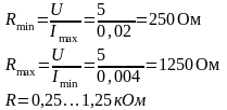 На практике можно выбрать резистор входящий в этот диапазон и находящийся в ряду нормального ряда, например из ряда Е24 на 1кОм.