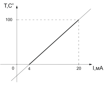 2. Обеспечить подключение датчика температуры с диапазоном 0..100°С, с токовым выходом 4..20 мА и питанием +12..+42 В к входу АК контроллера 0..5 В. Рассчитать и выбрать нагрузочный резистор. Выводы датчика +V, -V. Рассчитать и построить характеристику Т(I). Сколько градусов приходится на одну дискрету, если преобразование 12-и разрядное